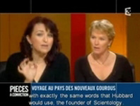 ![]() Host Elise Lucet ![]() Left, former Scientologist ![]() Forum woman cries ![]() unhappy Landmark customer |