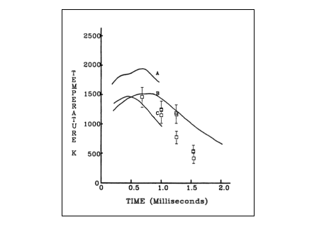 To the naked eye, many of the Waco FLIR flashes look like what one would assume gunshots would look like. Viewers readily interpret this assumed similarity as prima facie evidence of gunfire. However, when the gunshot claim is subjected to the objectives rules of the scientific method it fails for the same reason it fails when subjected to the mathematical rules in the algorithm of the VIPER gunshot-detection program [3-5] -- it fails because the Waco flashes are actually not like gun-muzzle flashes. That, plus the facts that the objects upon which flashes occur can be seen and no shooters are ever seen at or moving to or from the flash locations, is why the Justice Department's Office of Special Council concluded that the flashes recorded on the Waco FLIR are not gunshots. ANOTHER CLAIM BITES THE DUST McNulty's latest production, The FLIR Project, [22] introduces a new scenario. While his tests confirmed that muzzle flashes have a natural duration no longer than 1 video frame, McNulty discovered that the thermal signature of a muzzle flash could be sustained for up to 5 video frames if the gun is fired into a thick cloud of dust. The flash duration was extended because dust particles lingering in a muzzle-flash zone were heated by the flash and dissipated their heat over 5 video frames, almost as long as the 7-frame average of Waco flashes.